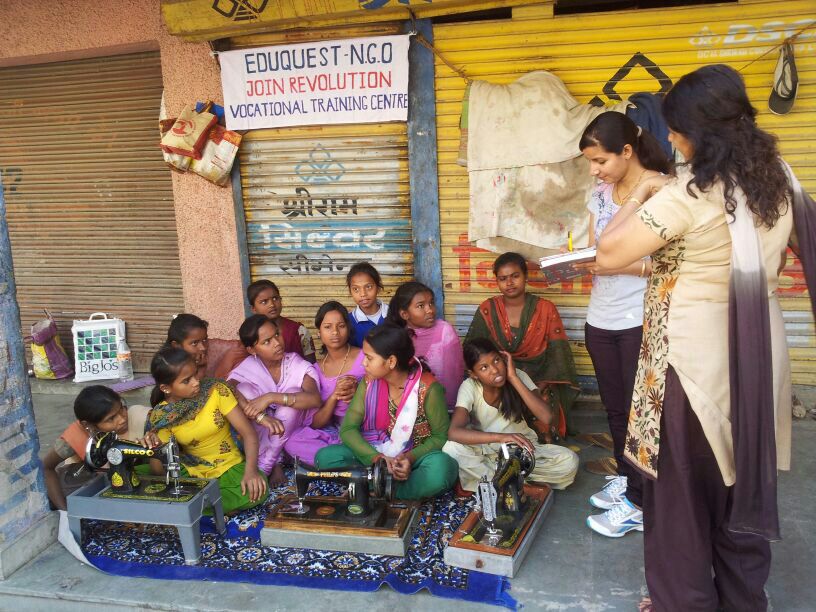 Eduquest supports women and adolescent girls through legal awareness, learning support, health and hygiene education, and vocational training programs such as stitching, beauty services, mehendi, and crafts.